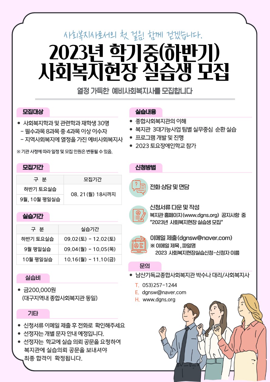 2023년 하반기 학기중 사회복지현장 실습생 모집