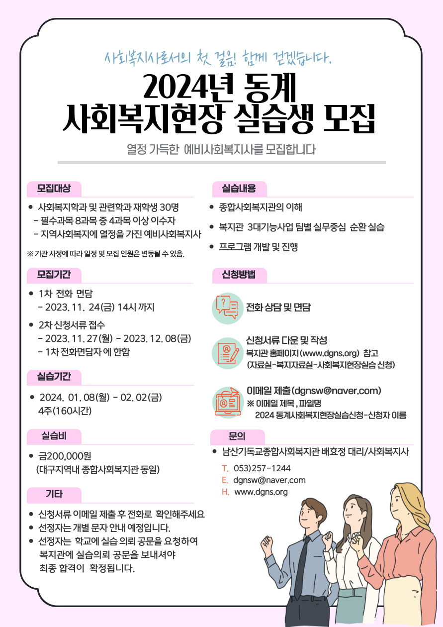 2023년 동계 사회복지현장 실습생 모집