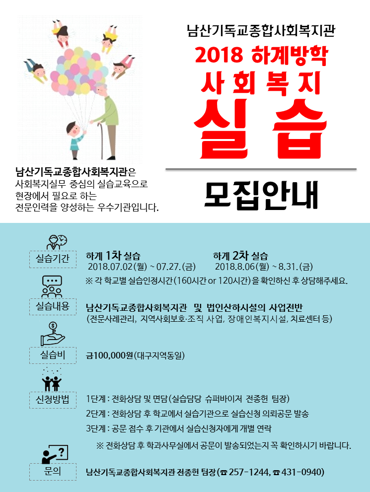 2018 남산기독교종합사회복지관 하계실습생 모집