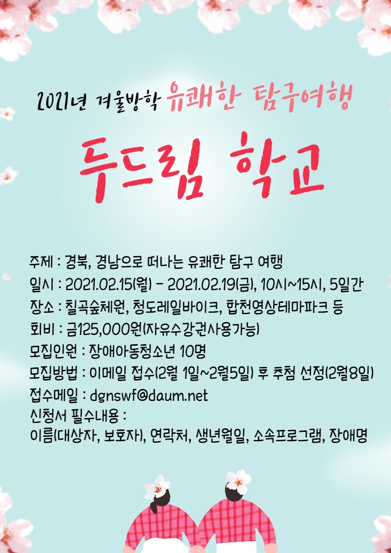 공지사항| 2021년 겨울방학 여행 "두드림학교" |