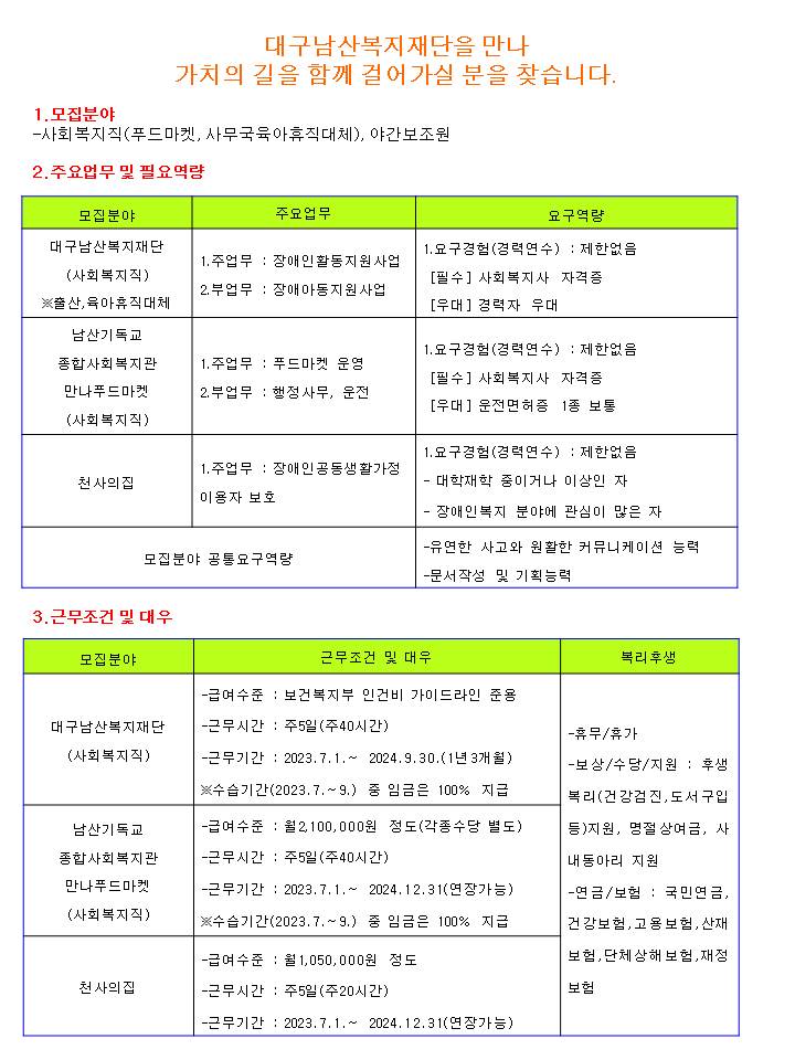 채용공고| 대구남산복지재단 직원채용 공고(계약직) |